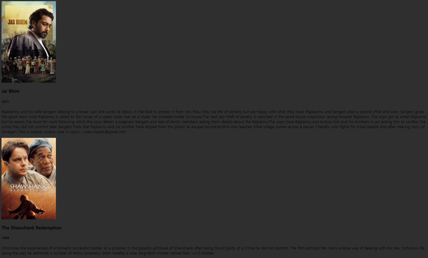 그래도 API로 영화 데이터를 가져와서 페이지에 보여주는데까지 구현했다.