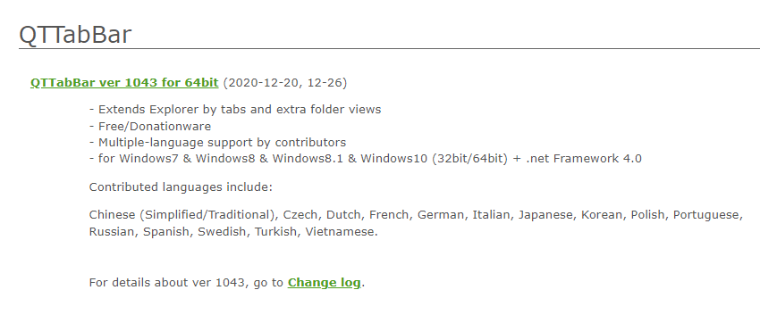 그리고 QTTabBar ver 1043 for 64를 클릭하여 다운로드한다.