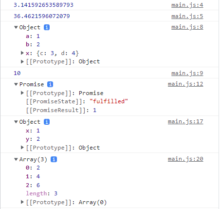 트랜스파일링된 main.js 실행 및 결과